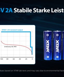 POZOR: 1,5 V litij-ionske baterije lahko polnite samo s polnilnikom XTAR L4, XTAR L8, XTAR LC4, XTAR LC8, XTAR MX4, XTAR VX4, VX2Pro ali Soshine Chocolate 1,5 V (ni priložen). Polnilniki za 1,5 V litij-ionske baterije drugih proizvajalcev morda niso združljivi.